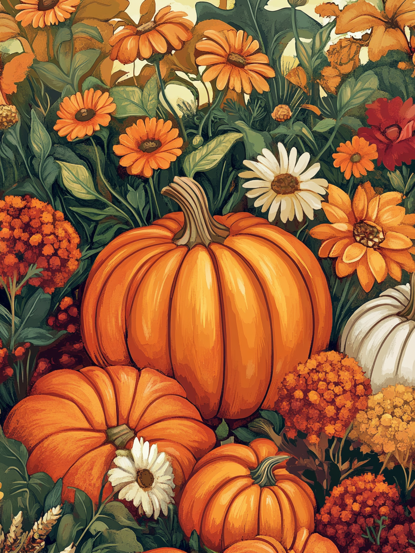 Garden Flowers and Pumpkins Diamond Art Kit