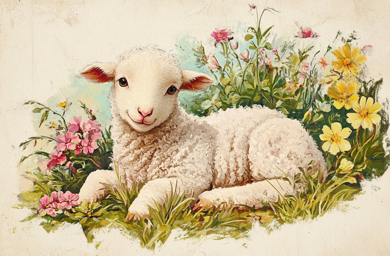 Lamb Laying in Flowers Diamond Art Kit