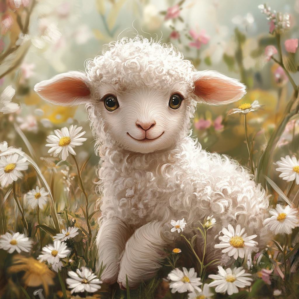 Little Lamb in White Daisies Diamond Art Kit