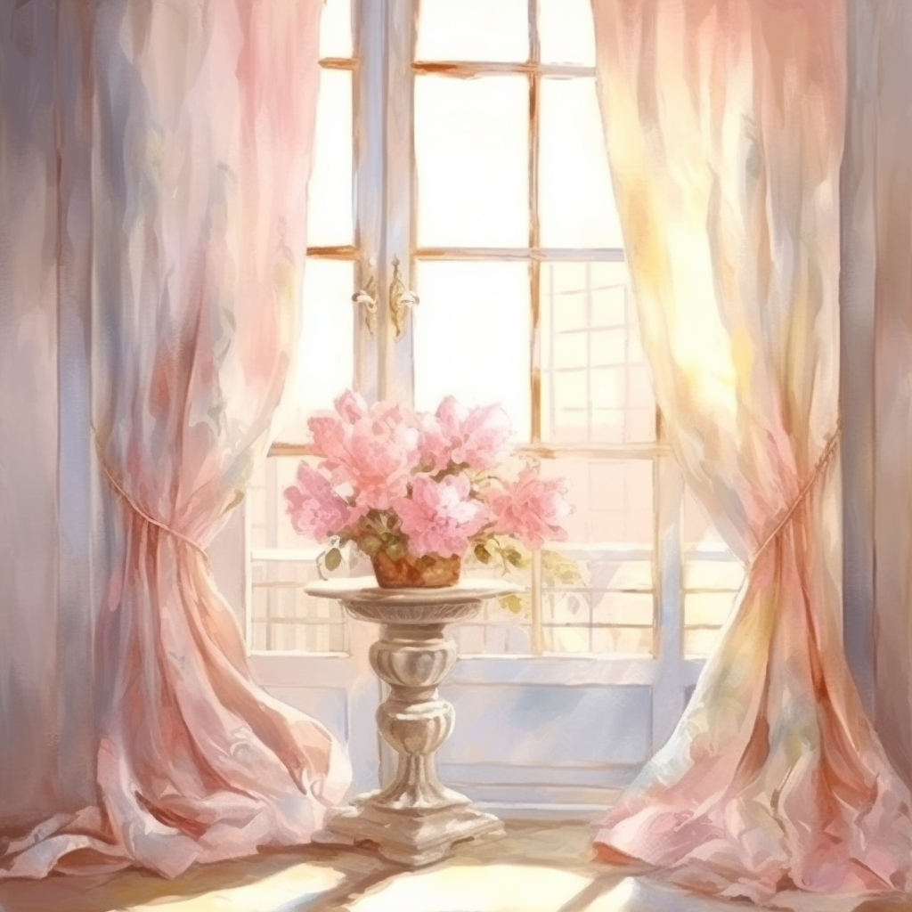 Pink Flowers Flowing Draperies Diamond Art Kit