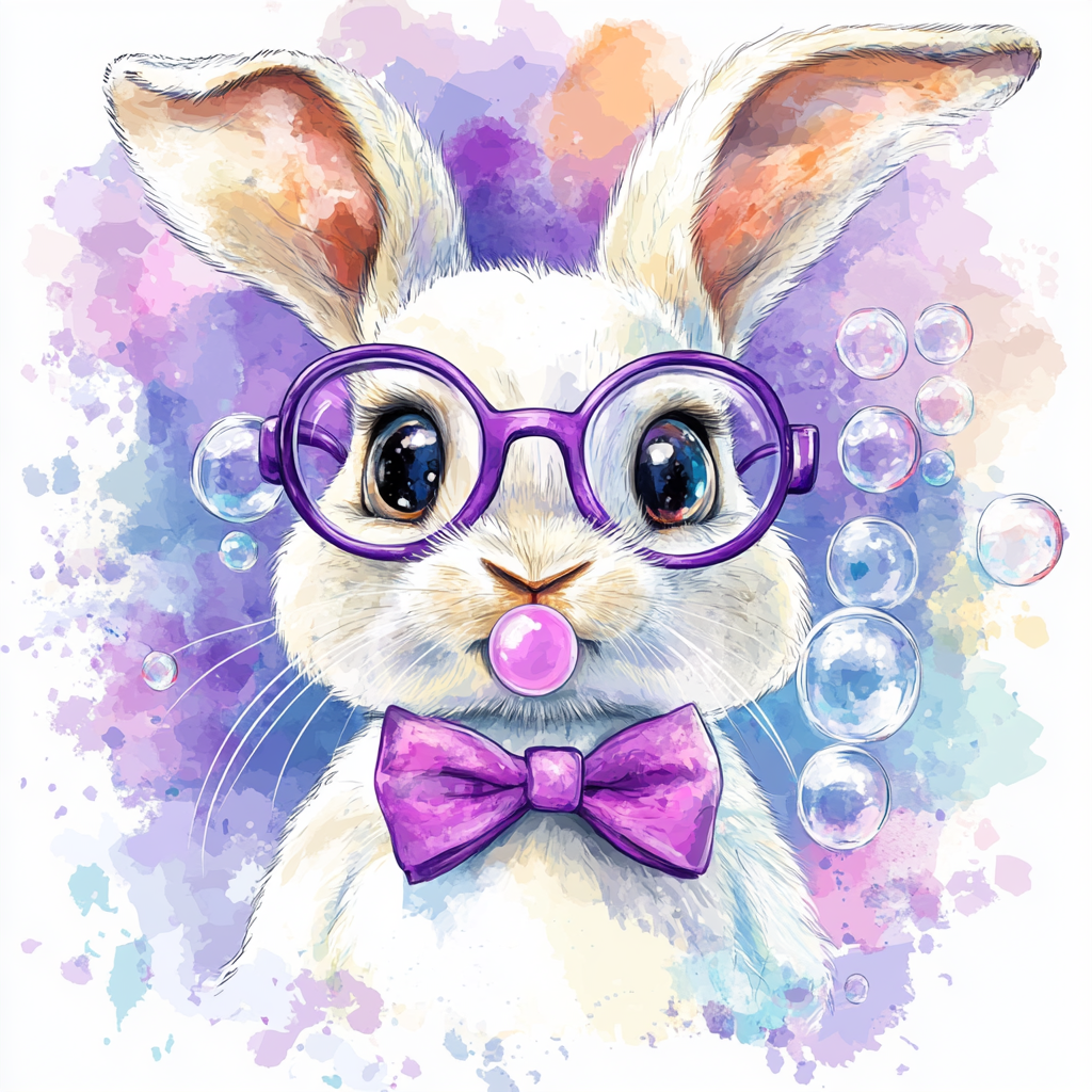 Purple Glasses Bunny Rabbit Diamond Art Kit