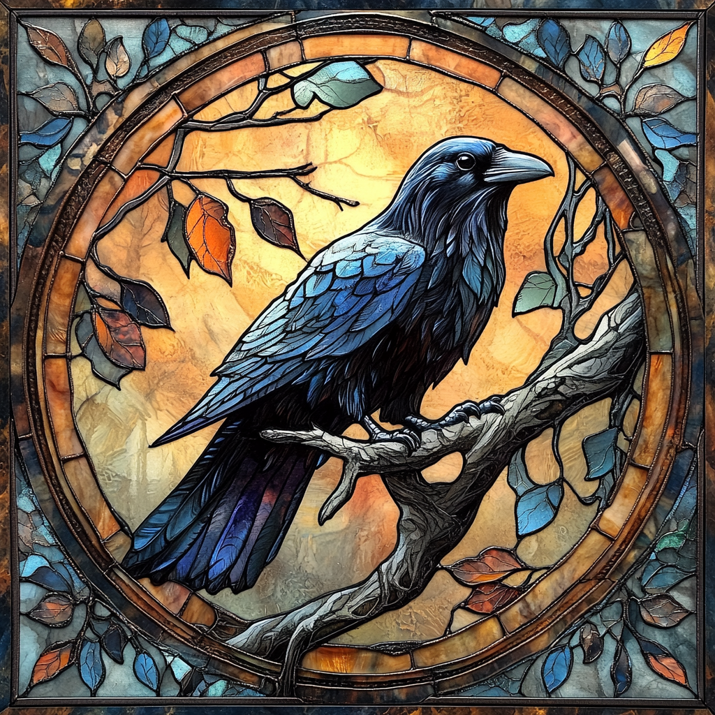 Raven on a Branch Circle Diamond Art Kit