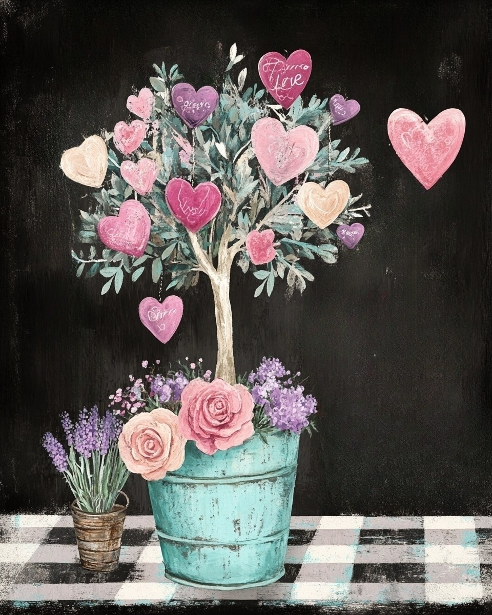 Roses and Hearts Tree Diamond Art Kit