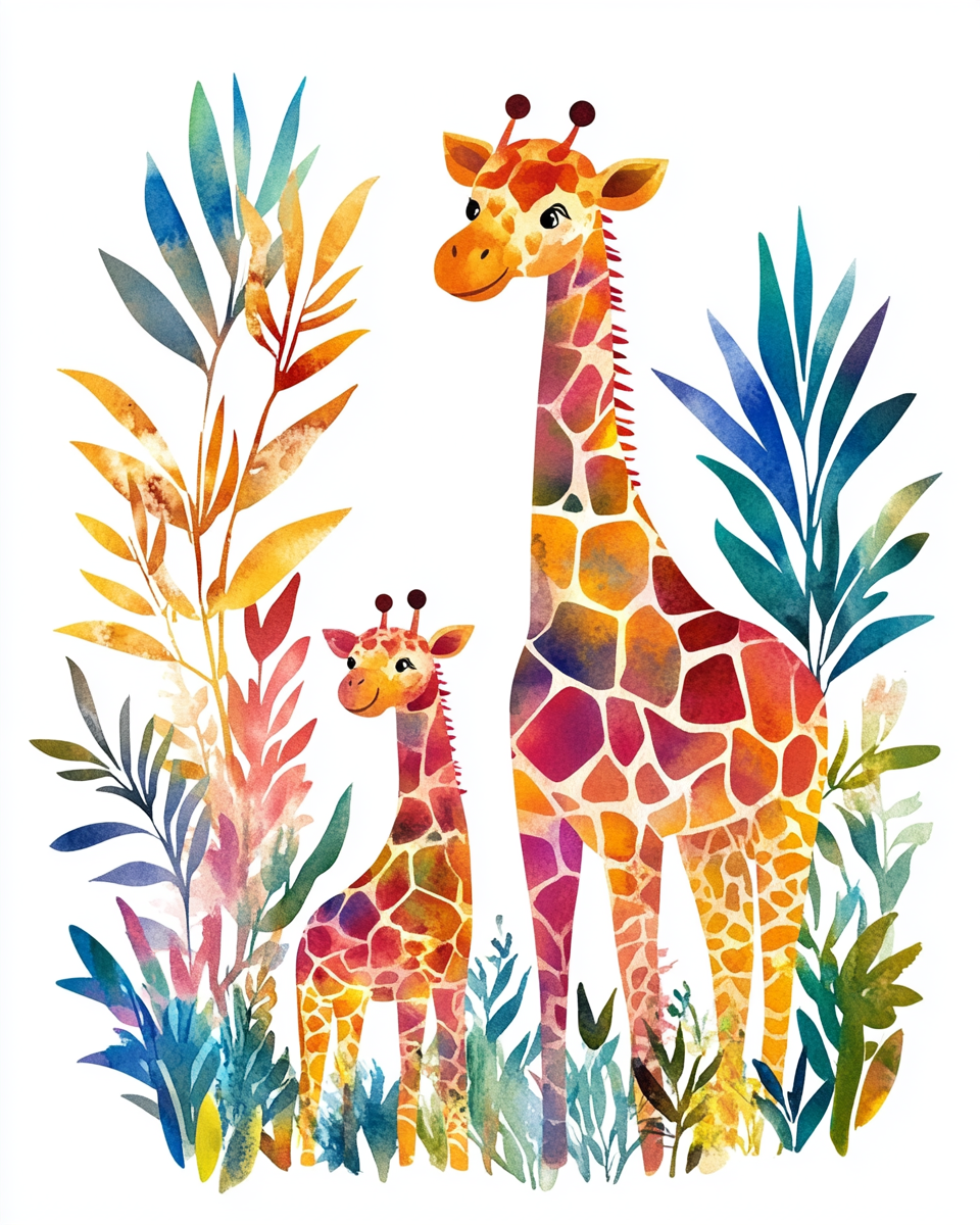 Watercolor Giraffes in the Jungle Diamond Art Kit